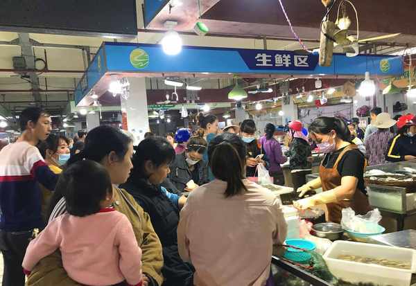 我们再去市场看看。我的住处临近东方市第一农贸市场,我每次踏入第一市场,总会被眼前热闹的场面所震撼。市场里人声鼎沸,特别是在海鲜区域尤为热闹。大家兴奋地挑着自己心仪的海鲜,毫不吝啬。其实,海鲜并不便宜,一条稍大的金鲳鱼或黄花鱼,大概都要20块钱,蟹子大虾鱿鱼稍贵一些,似乎贝类稍便宜一些。本地人挤在海鲜摊子前,每人讨价还价,购买力很强,想必每个海鲜摊都赚得盆满钵满。