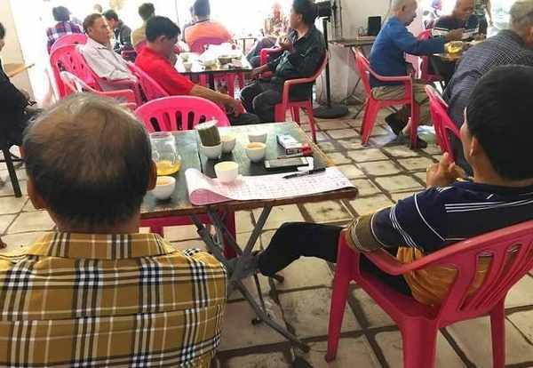 接着说东方市的老爸茶,茶馆里,大家是怎么舒服就怎么坐。三五知己也好,一个独酌也罢,间或有相熟的朋友过来,互相递一支烟聊上几句。他们还有一项“重要”的任务——打彩票,每个人都苦思冥想,认真地做个“发财梦”。周星驰电影里说过,人没有了梦想,跟咸鱼有什么区别?“老爸”们感觉饿了,就会点上一碟糕点,或是一碗海鲜粉。本地人的这种休闲方式真是令人艳羡,海南人太会享受了吧。