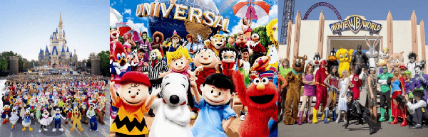 再谈主题公园的人物。每个主题公园对人物角色的重视程度并不一样,迪士尼乐园从一开始就非常重视角色,从米老鼠、唐老鸭、高飞开始,到后来的白雪公主、灰姑娘等公主系列,吸引了大批游客,几乎每个体验项目中都有动画明星助阵,乐园还专门设置了动画明星会见点 (meeting point),让演员扮演卡通角色和孩子们亲密互动,直到今天,每次动画明星的出现都会带来一阵轰动。