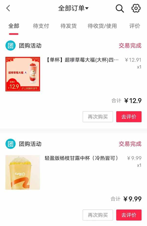 一向傲娇的喜茶也在抖音上推出了19.9元的团购劵,虽然活动力度没有其他品牌的大,但相比于喜茶人均29元的客单价,19元的团购也让不少人趋之若骛。