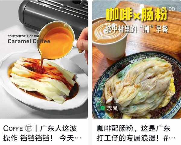 伴随着广东肠粉的出圈,一种新奇的组合也在各大社交平台出圈—— “肠粉+咖啡”。