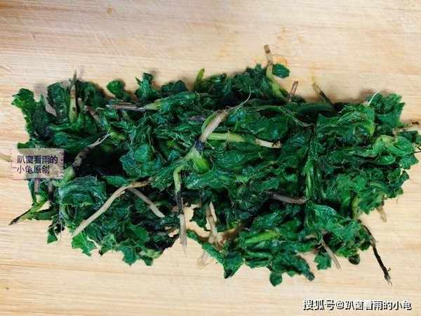 2:火上坐锅,锅中倒入清水,水开后将刺菜放入焯水,然后捞出来过凉水,再攥去多余的水分,放在碗中备用。