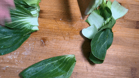 5. 小青菜洗净,切成长段,切好放入盘中备用