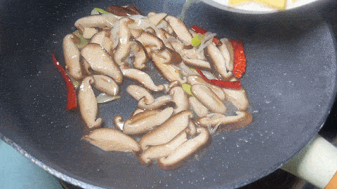14. 爆香之后下入焯过水的香菇翻炒