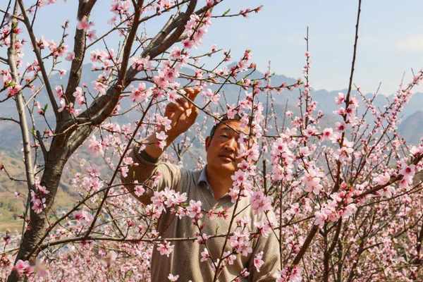 金钟镇狮子村果农刘书书正在桃林里清理树上多余的岔枝,“我种了40余亩白花桃,每亩能产鲜桃5000余斤,去年除去各种开销,纯利润有16万左右。”刘书书说,随着交通越来越便利,桃子销路越来越好,明年还想增种10亩,持续增加收入。