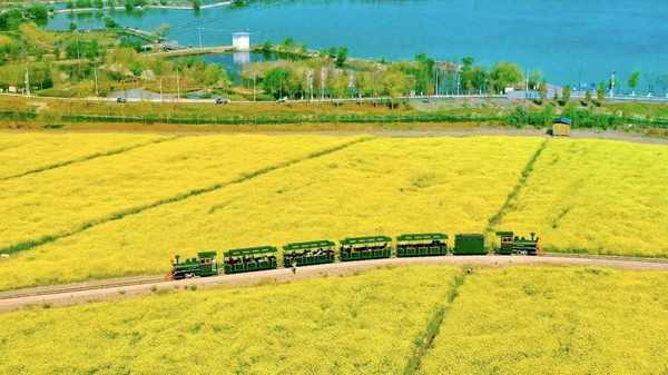 伴随着馥郁春风,“星云号”小火车缓缓启动,以慢速度、超有趣的独特旅行方式,将白墙青瓦的渔村民居、烟波浩渺的星云湖、流金四溢的花海景观、春和景明的田园风光串联起来,坐在小火车上就能欣赏到这些“流动的风景”。