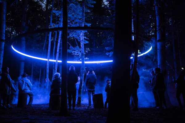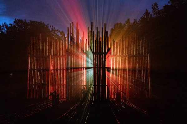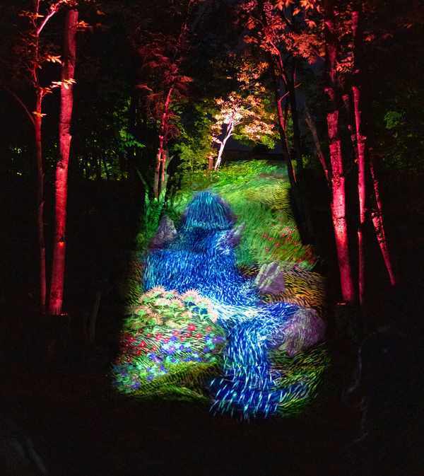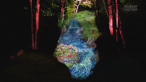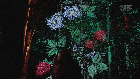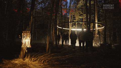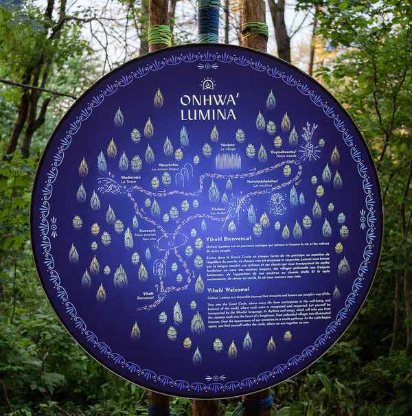 这是一场与祖先节日庆典有关的光影夜游秀,也是Moment Factory的第14个Lumina夜游系列。Moment Factory团队利用灯光设计、多媒体投影、原声带等多种技术相融合,设置了七个区域,以此讲述Wendat文化内涵——从生命周期到生物之间的共同关系。