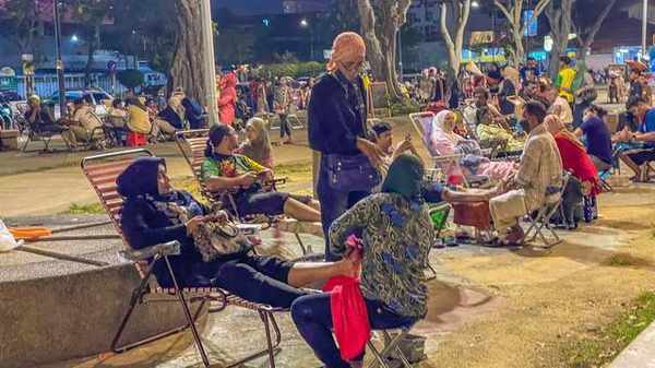 现在是将近凌晨12点了,公园内还有这么多人,坐在海边纳凉,“马杀鸡”档口还非常火红,人们躺在椅子上,就可以体验一场舒服的按摩。