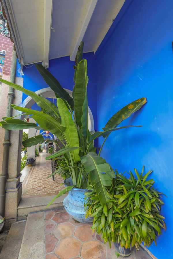 这种颜色是由当地一种兰花的花朵捣碎后产生的,晒干后就能当作颜料使用。富有的槟城居民喜欢用这种颜料来涂饰他们的房屋外墙,因此这些蓝色的墙壁就成为了这里的特色之一。