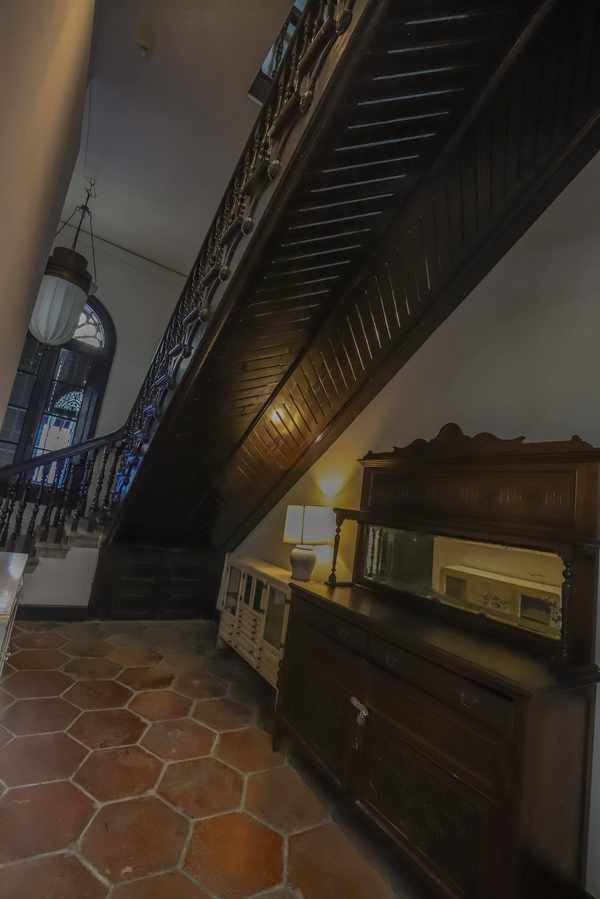 这座建筑是“东方的洛克菲勒”张弼士的故居,于1897年开始建造,经历了七年的时间才竣工,其设计风格东西合璧,配有百叶窗、新艺术风格的彩色玻璃和精美的地砖,凸显了当时富有的海峡华人的审美取向。