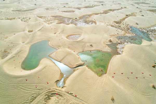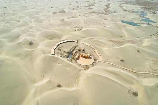 航拍塔克拉玛干沙漠,我居然发现了沙漠之中的湖泊,大自然就是这么神奇,也不知道这个湖泊的水源来自于哪里?