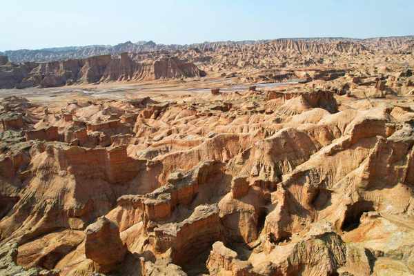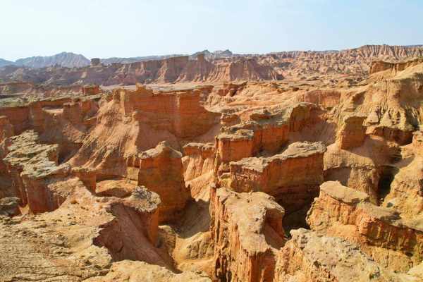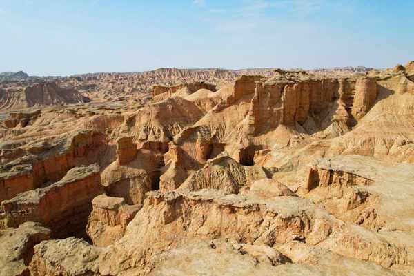 大自然的鬼斧神工,让这里充满了苍凉感,满目赤色的焦土,如同被烈火烧得发红,巨大的山体形状各异,这是被称为“魔鬼城”的山丘部落,这里是拜城克孜尔红石林景区。