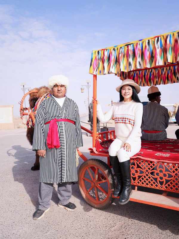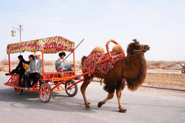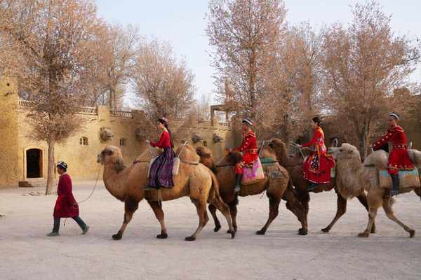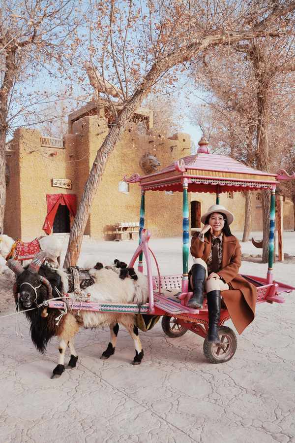来到齐兰古城,还可以体验一下骆驼马车,10块钱一个人,感受一下丝路文化的魅力。