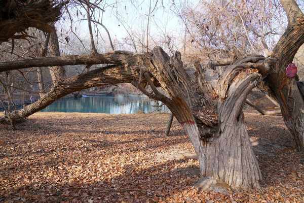 胡杨有这么倔强的生命力呢?原来胡杨是树木中起源最早的类群,被称之为植物的“活化石”,一棵胡杨的主根,可以穿越地层一百多米。