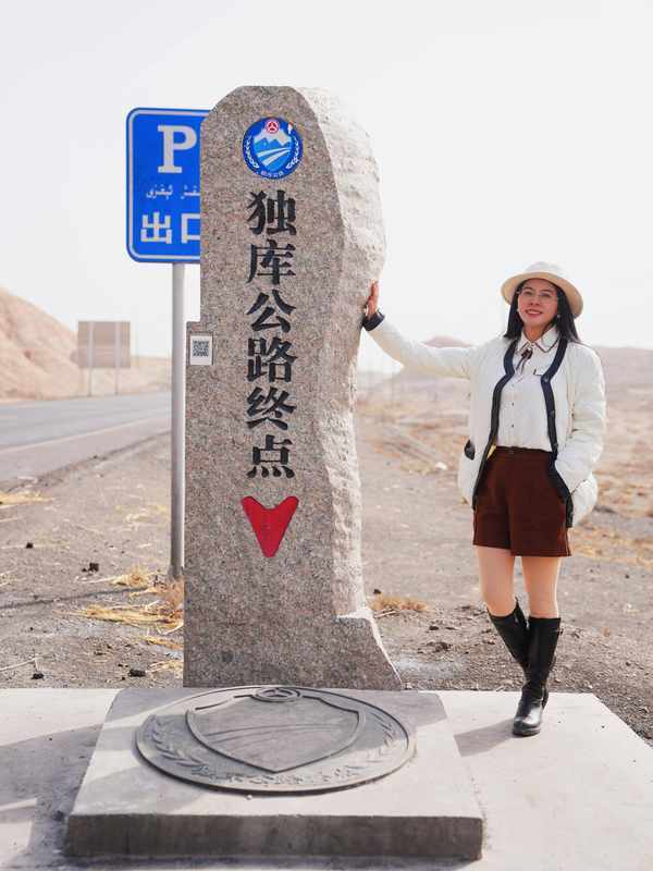 我在库车旅行打卡的第一站,就是独库公路的终点路标,独库公路被中国国家地理评选为纵贯天山脊梁的景观大道,全长561公里,花了10年的时间才修建而成,起点独山子,终点库车。