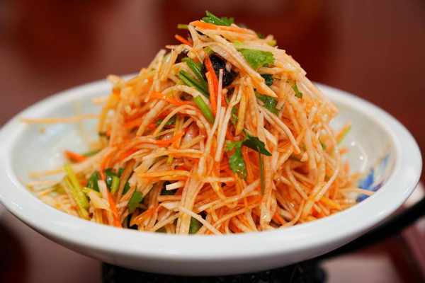 没有一只鸽子能活着飞出新和,第一个美食就是新和县的鸽子,煎、炒、烹、炸、烩、焖、炖、煮,各种做法,让人赞到爆。还有一道菜很特别,我问了才知道,叫做磩土地恰玛菇,是一道凉菜,很爽口。新河县的牛肉也很好吃,时尚番茄炖牛腩、炭烤牛胁排,吃得很有满足感。