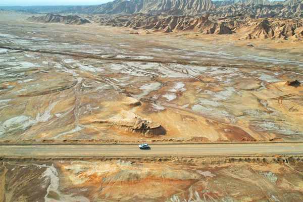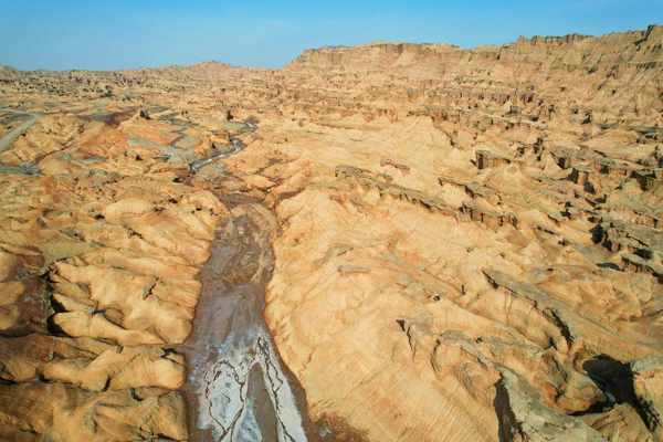 极目远眺,云朵山脉连绵不绝的风蚀地貌,呼啸的风吹动衣袂,发出猎猎的响声,这辽阔苍茫的美景是大自然给予阿克苏最好的礼物。