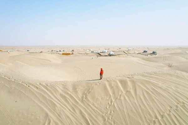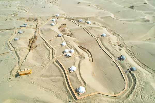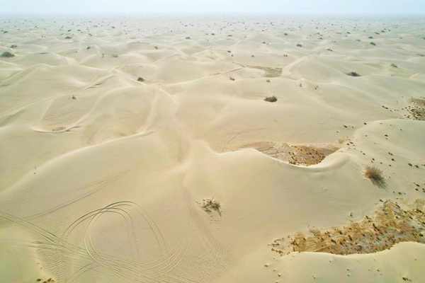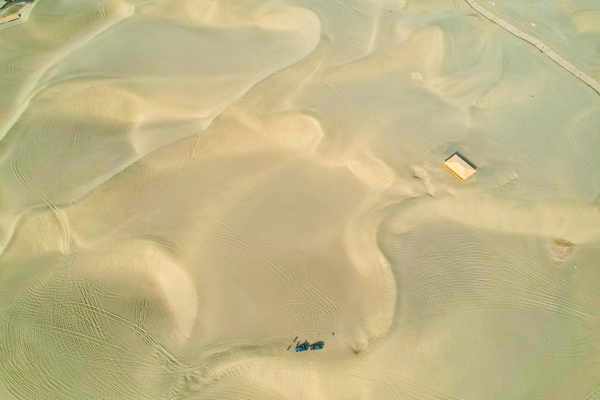 在茫茫大漠中,深深浅浅的波纹有着迷人的曲线,引导我走向远方、更远方,这里尤其适合无人机航拍,风景辽阔深远。