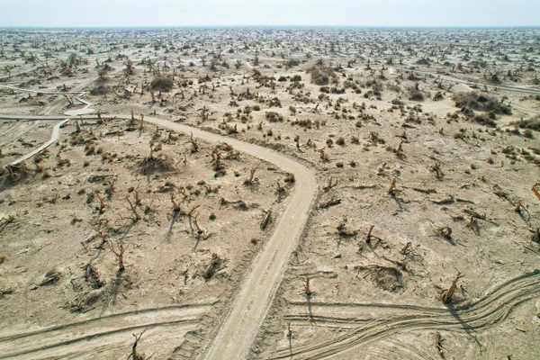 用航拍的角度看睡胡杨景区,有一种苍凉悲壮的感觉,胡杨树