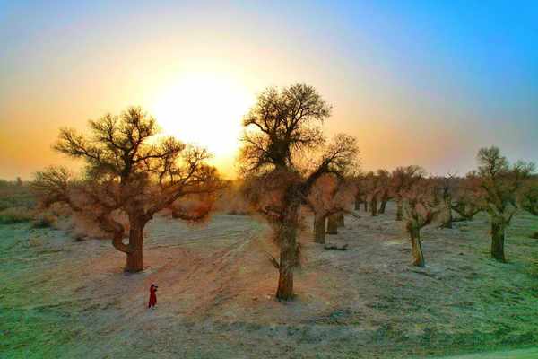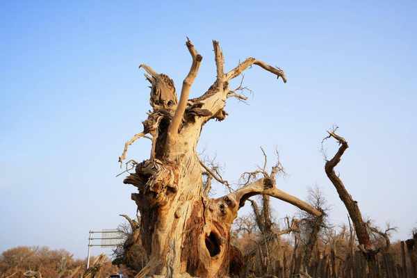 余秋雨曾赞美它说:胡杨树一千年不死,死了一千年不倒,倒了一千年不朽,铮铮铁骨千年铸,不屈品质万年颂。每一棵胡杨,都如一个倔强的将士,把利剑刺向天空,挑战生命的长度和大自然的肆虐,那呼啸而过的大漠之风,依稀夹杂着一声声悲凉的叹息。