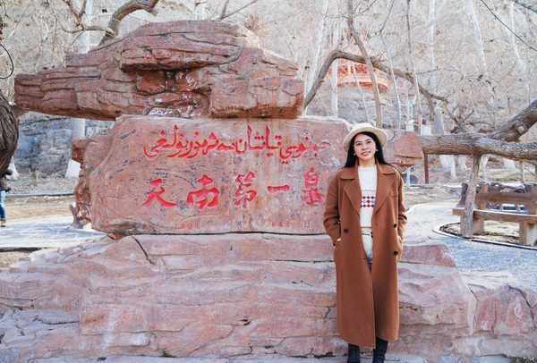 听当地人跟我讲,她小时候经常来燕泉山玩 ,留下了很多童年的回忆,图片上我留影的位置,基本上每一个乌什人,都喜欢在这里打卡留念。