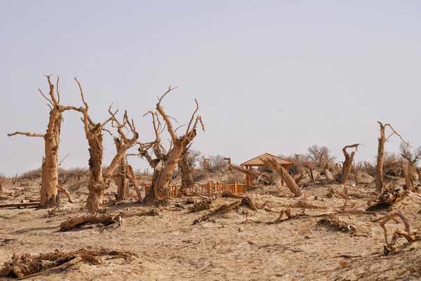 有的倒伏在沙漠上,有的还挺拔的直立,努力保持向上的姿态,在这片贫瘠的土地上,和大自然倔强的奋斗着。