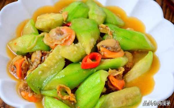 材料:丝瓜1根、扇贝1盒,大蒜1个、盐二克、料酒1汤匙