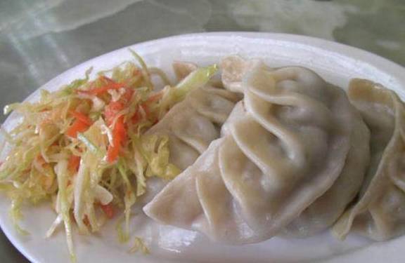 当然,另一个受欢迎的快餐是巨大的烫面牛肉饺子,馅料是纯牛肉馅的,有点像灌汤包,同样配一份咸菜,不同的是这里的饺子是没有醋可以蘸的,只有一些特别调配的酱料,味道也同样很美味,这种吃法和尼泊尔饺子MOMO更为相似。