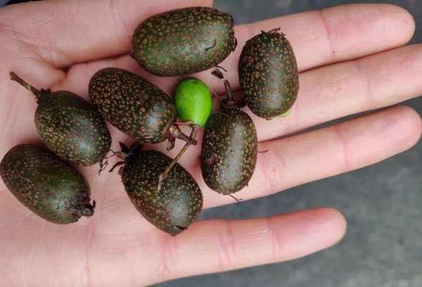至于它的果实,非常难看,比我们平时看到的猕猴桃小很多。美丽的奇异果呈圆柱形,长16-22毫米,直径11-15毫米,大约有成人拇指那么大。不仅个头小,果皮上还有突出的疣状斑点。说实话,就这个样子,不知道的人肯定会认为是不能吃的野果。