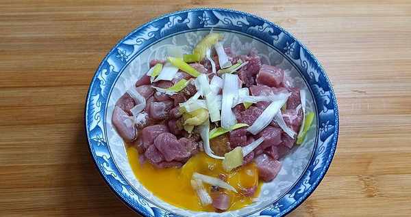 这道菜的调料不要放太多,调料放多了会抢了味道,盐、料酒、胡椒粉就够了,腌制的时候要加蛋黄,这样炒出来的肉色泽和口感会更好。