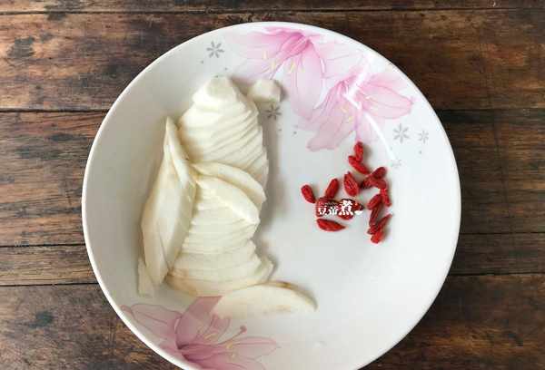 2、果酱去皮后洗净,切成薄片。枸杞不需要一把一把地洗。