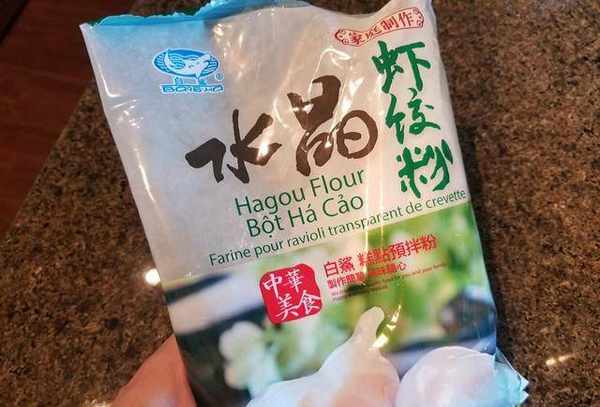 4.水晶壳:清面粉加入一半生粉,倒入热水用筷子快速搅拌(以免烫手),面团变浓稠至半熟,盖上锅盖几分钟,加入剩下的玉米淀粉,加少许油用手揉成球状,盖上湿布静置20分钟。如果没有清粉,也可以去超市买现成的水晶虾粉(西雅图华人超市买的)