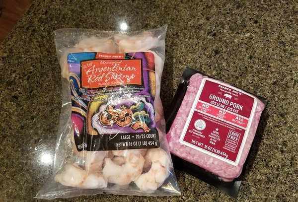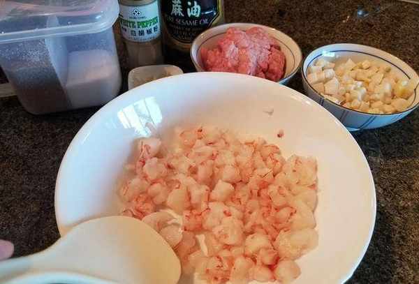 1.我一直很喜欢AmericanTradeJoe's的阿根廷红虾。这次我用它来做水晶虾饺!原方用的是猪角,为了健康我用的是肉末,也可以把虾剁成虾泥。