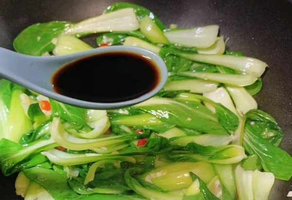 第三步,加一勺生抽,一勺蚝油,一勺盐,胡椒粉。