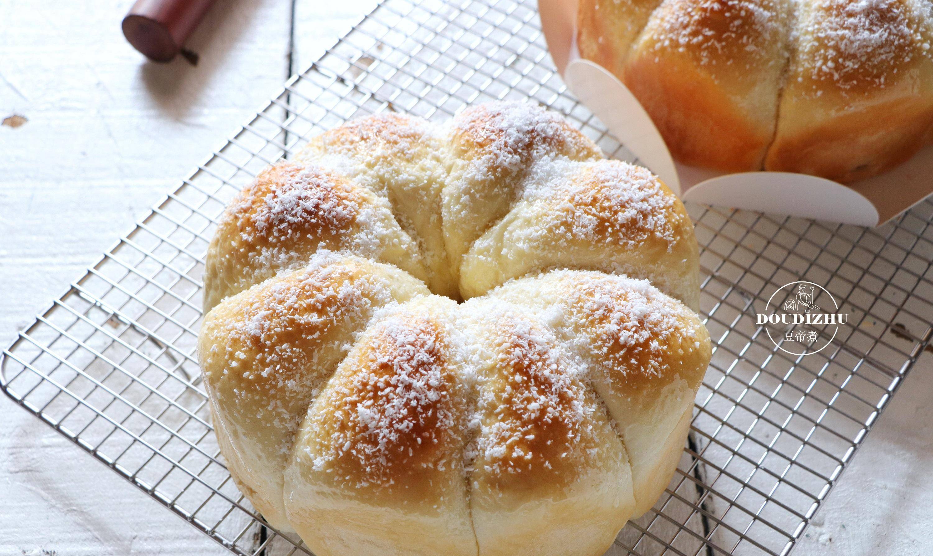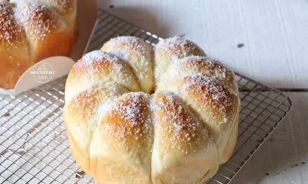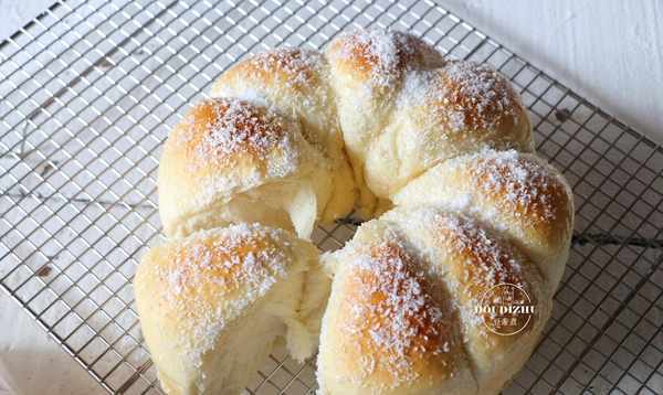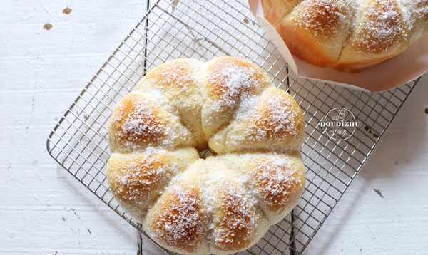 9.面包出炉后,趁热刷上一层纯蜂蜜,再撒上一层椰丝。