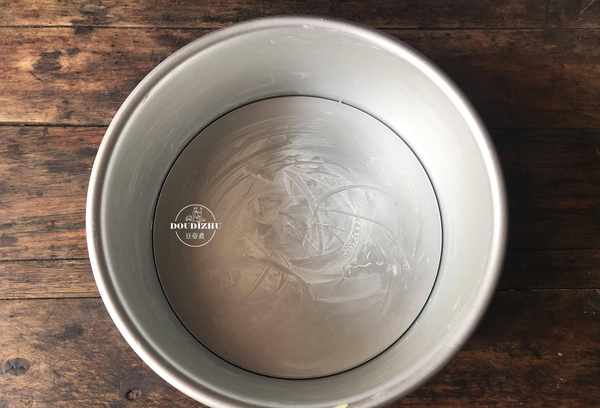 4.待面团发酵快成型时,在戚风模(20公分)上抹一层黄油,备用。