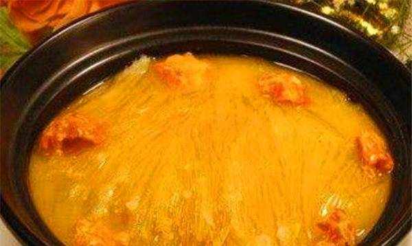 2、锅烧热,下油,生姜、生姜炒出香味,取出,加入高汤、菜叶、菜籽心、酱油、精盐、糖、绍酒,烧开,捞出。捞出浮沫,用漏勺捞出籽和油菜心,放入汤锅中,再将翅片和螃蟹放入锅中,用原锅煮熟;