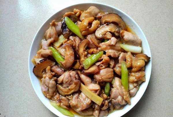 【做法】:1、如果能买到无骨鸡腿,就切成小块。如果买不到无骨鸡腿,就把它们切成块。干香菇泡软后,去根切块;