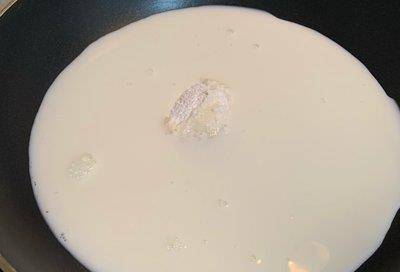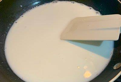 2.关小火,不断搅拌鲜奶。