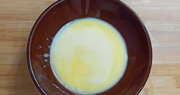 【第三步】:雪花切块装盘,鸡蛋打入碗中搅拌成蛋液。