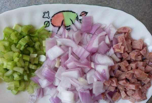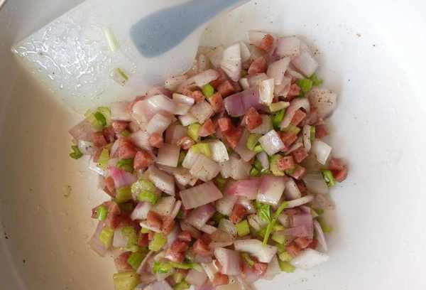 馅料:洋葱半个、香肠1根、芹菜1根、黑胡椒少许、盐4克、鸡蛋1个