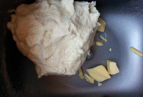 2、当面团揉至膨胀时,加入室温软化的黄油,继续揉至吸收,进入发酵阶段。