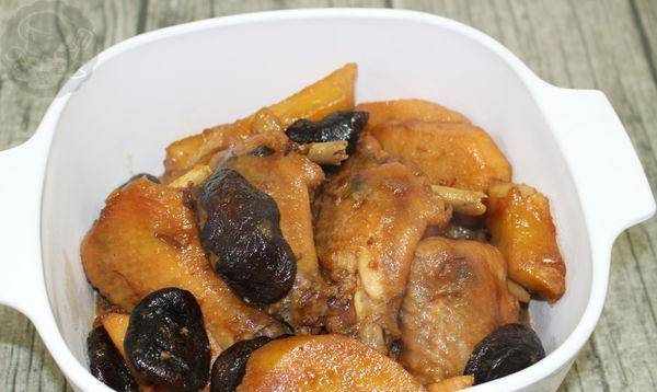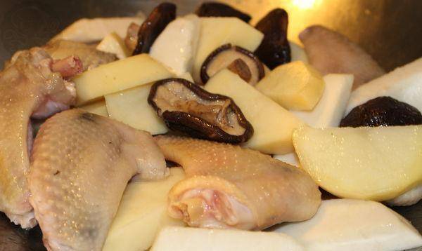 鸡翅8只、紫薯1个、中笋1条、干香菇小8朵