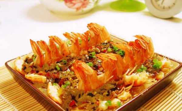 4、将方法(3)淋在方法(2)的鲜虾上,放入蒸锅,大火蒸四分钟即可食用(排气后时间不能太长,否则虾不会感到嫩)。