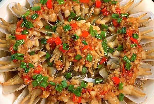 2.蛤蜊用冷水焯一下,煮至壳打开,捞出洗净,沥干水分,剥去一半的壳,不要用刀片。