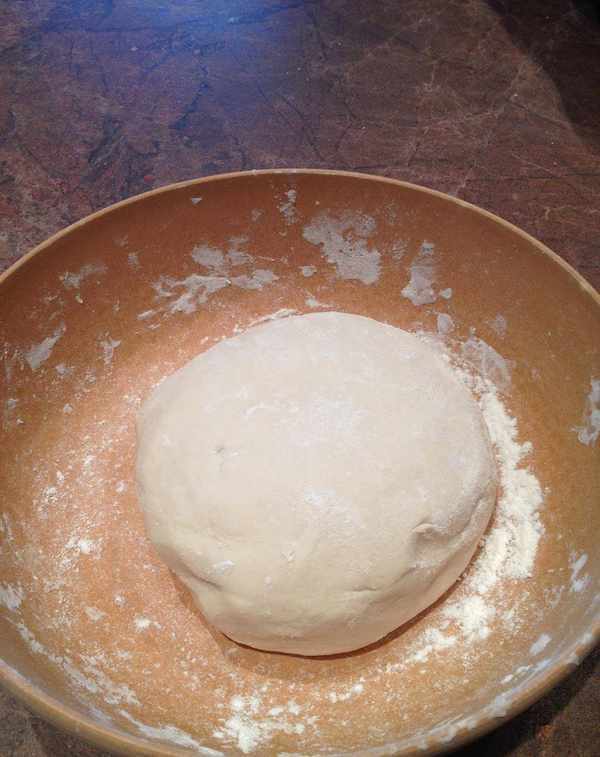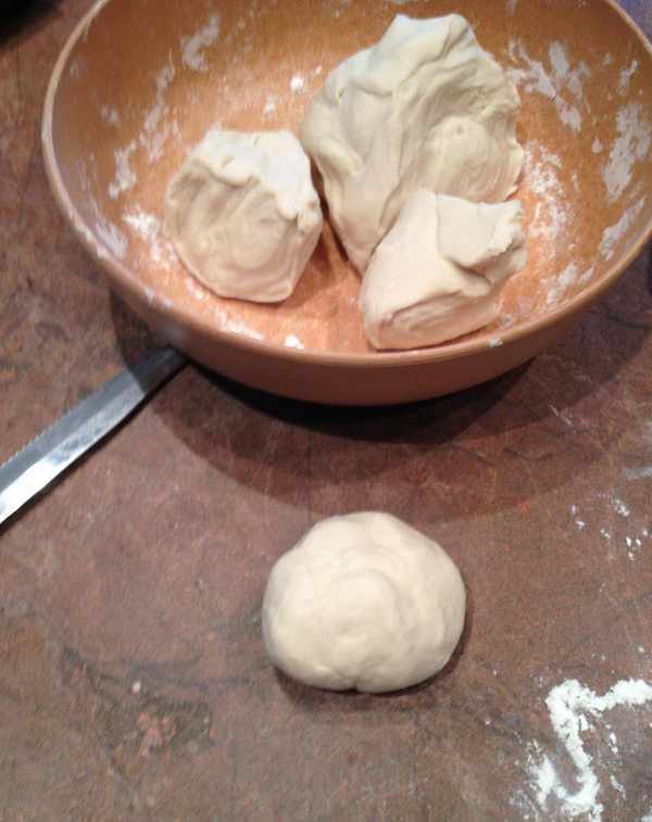 稍微冷却后,开始揉面团20到30分钟(这次去加州,真的很胖,面团会很累)。揉至面团光滑且略带粘性,然后盖上湿布静置约20分钟。半个小时,一边做馅料。