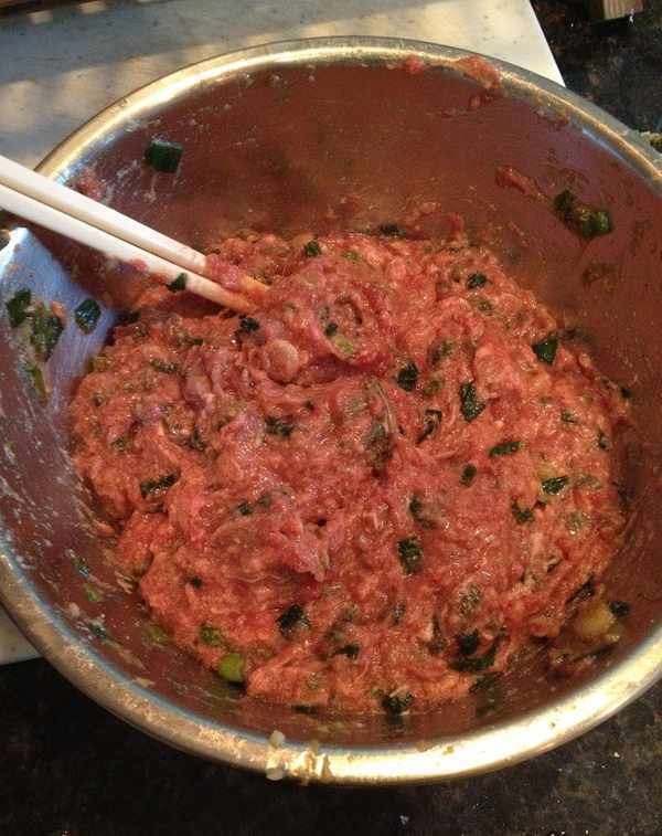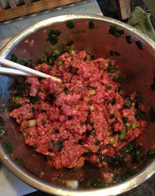 碎牛肉(这里的冷冻碎肉是标有脂肪和瘦肉的量的,我这次选择了80%瘦肉和20%脂肪,但是脂肪不够,加了更多的香油。馅饼要喷汁,那个馅料要略油)
