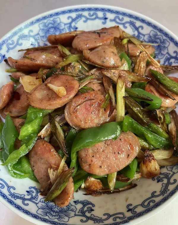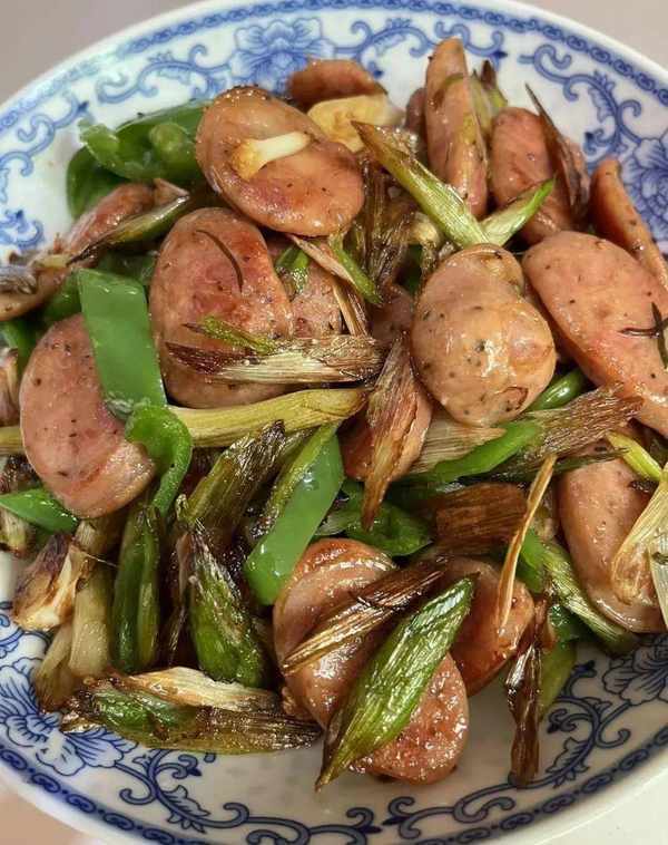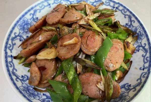 这样,蒜苗炒香肠就完成了。既有蒜苗的香气,又有香肠的味道。两者搭配在一起很好吃。