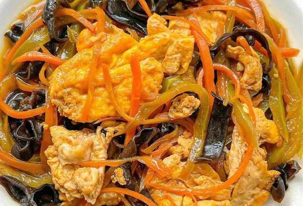 准备材料:鸡蛋、胡萝卜、黑蘑菇、青椒、鱼露。