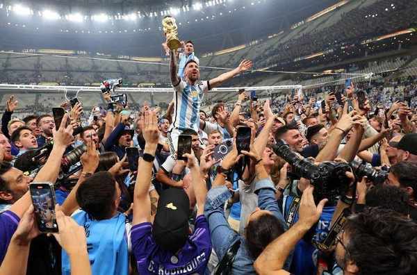 当大力神杯的光环照耀在卢赛尔体育场的上空,阿根廷球迷热血沸腾血脉喷张,他们难掩激动之情,所有球迷的心都在为阿根廷打着节拍,卢赛尔体育场不只有纵情狂欢,还有多少幸福的眼泪在飞。